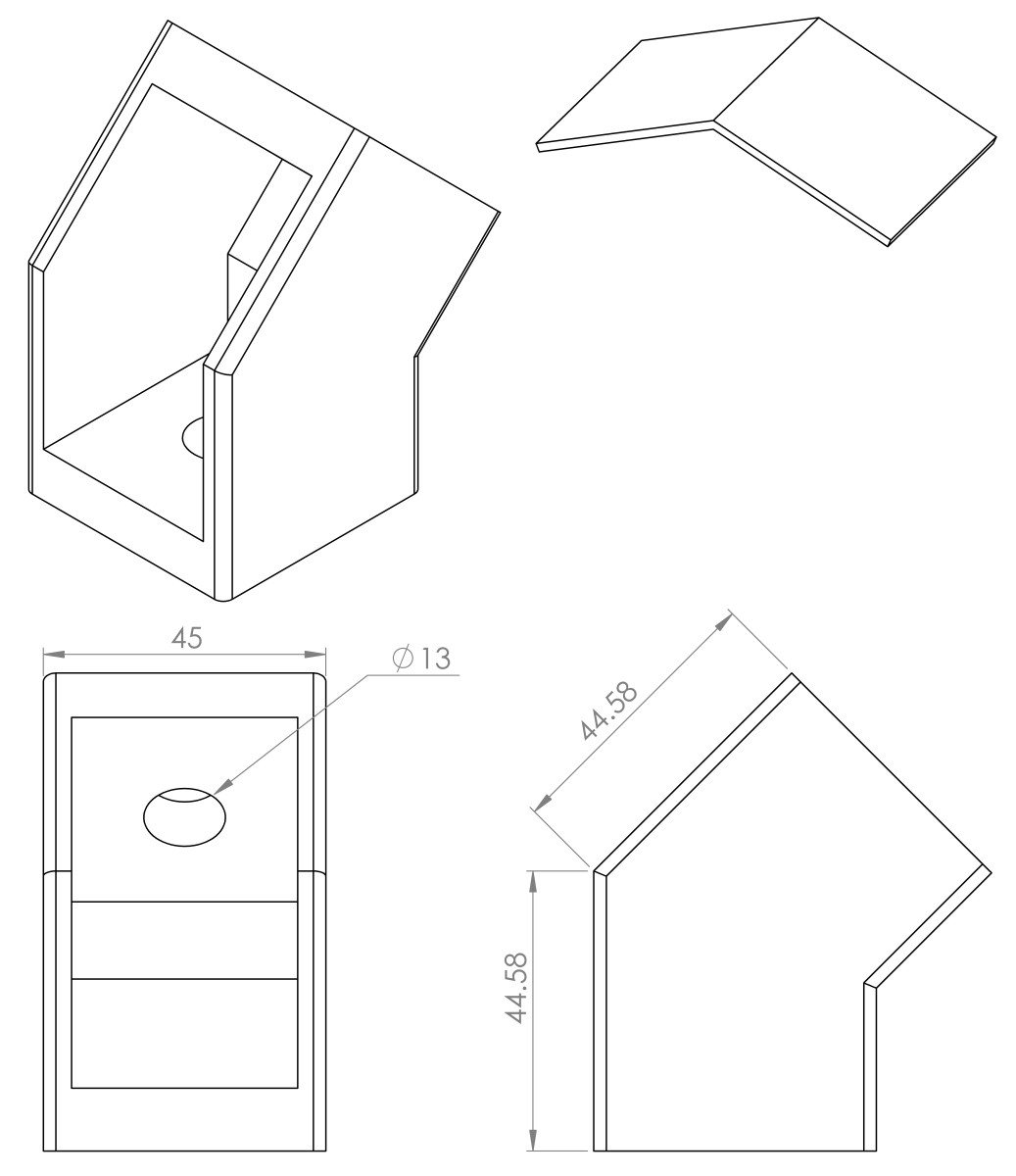 Met deze verbindingshoek is het heel makkelijk om 4545 profielen onder een hoek van 135 graden met elkaar te verbinden. Met deze verbinder is het ook makkelijk om schoren in een opstelling te bouwen. Kijk bij het tabblad "bevestigingsset" om de juiste bevestigingsmaterialen te bestellen om de verbinder te gebruiken.