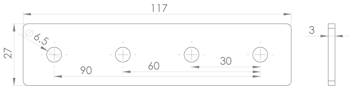 Met deze aluminium plaat maakt u eenvoudig een verbinding tussen 2 aluminium profielen. De plaat is voorzien van 4 gaten met een diameter van 6,5 mm. De dikte van de plaat is 3mm. Deze plaat is bedoelt voor het verbinden van 30-serie profielen. Kijk bij het tabblad "bevestigingsset" om de juiste bevestigingsmaterialen te bestellen om de verbinder te gebruiken.
